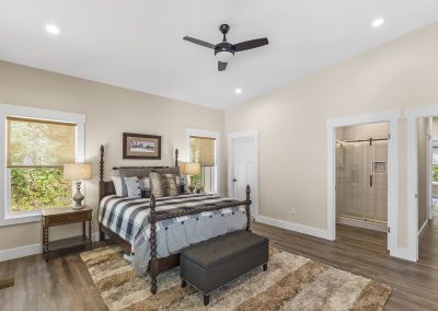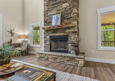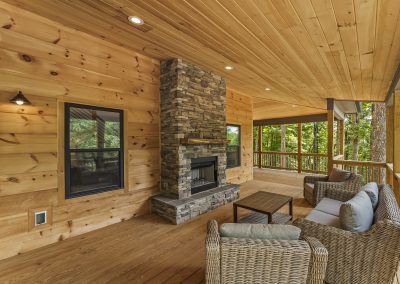 The Watauga II Cabin is a modified comfortable mountain retreat inspired by Bob Timberlake. On one level with two primary suites, plus a full sized sleeping loft or third bedroom. The cabin has an open and efficient layout that allows family and friends to vacation together indoors or out with over 700 sq. ft. of covered outdoor living space with its own separate fireplace.